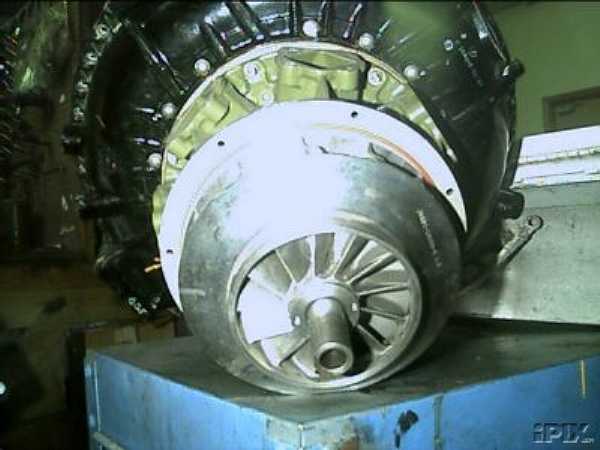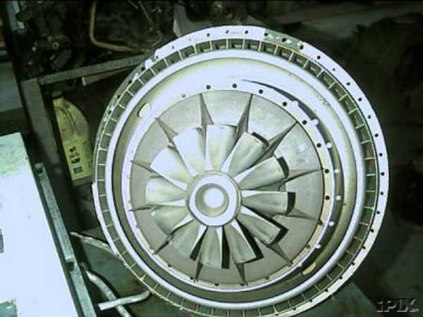 Here a cross-section of the “four-bearing” version shown. The turbine rotor and the compressor rotor are separate assemblies, each one suspended in two bearings (a ball and a roller bearing) and connected with a splined coupling. Initially, this was the way the engineers decided they can better control the shaft resonances. Another peculiarity that the early engines featured is the shrouded first stage compressor impeller: