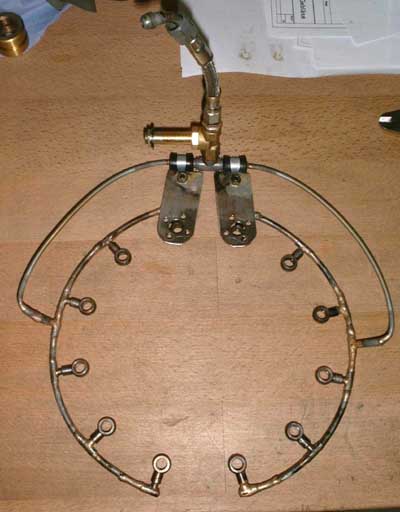 or kerosine to the twelve vaporiser sticks. To provide equal fuel quantities to all sticks, the fuel has to pass calibrated resirictor plates in each of the injectors.
