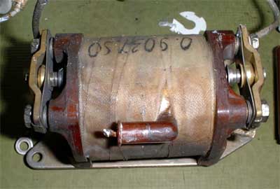 top). The screw in the centre of this allows the adjustment of the gap of the breaker contacts. The sheet metal strip in the centre of the ignition coil carries the moving breaker contact and is connected to the second set of