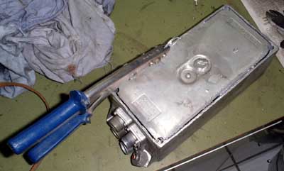 of this ignition box. The supply voltage plug (lower right) is broken, the damage to the front isn’t visible very well in this view. Yet the face is warped so badly that the supply plug interferes